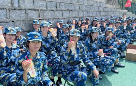 接过带着凉意的柠檬水,学子们脸上洋溢着惊喜与笑容,纷纷向领导表达感谢,并表示将把这份关怀转化为训练的动力,严格要求自己,认真完成每一项军训任务,不负学院的期望。