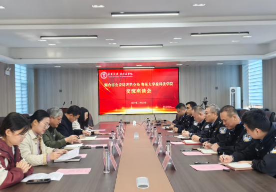 11月13日上午,鲁东大学盈科法学院与烟台市公安局芝罘分局交流座谈会在东三201会议室举行。烟台市公安局芝罘分局世回尧派出所所长娄承旭,芝罘公安分局法制大队大队长张伟健、副大队长王雷光、政工室科长徐海春,民警郝绪言、张嘉璐、王言午一行来访。鲁东大学盈科法学院党委副书记靖波,鲁东大学保卫处副处长刘鹏,盈科法学院学生事务办公室主任严煜、团委负责人孔雪、星火志愿者协会会长刘志群、副会长宋雨荷出席交流活动。双方围绕人才交流培养、实习基地建设、产学研融合等方面展开交流。