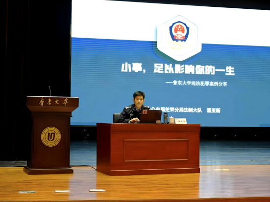 2025年12月16日,我校联合烟台市公安局芝罘分局、世回尧派出所在学术中心成功举办法治教育培训会。分管工作辅导员老师、各班班长及团支书参会,共同接受法治熏陶与安全警示教育。